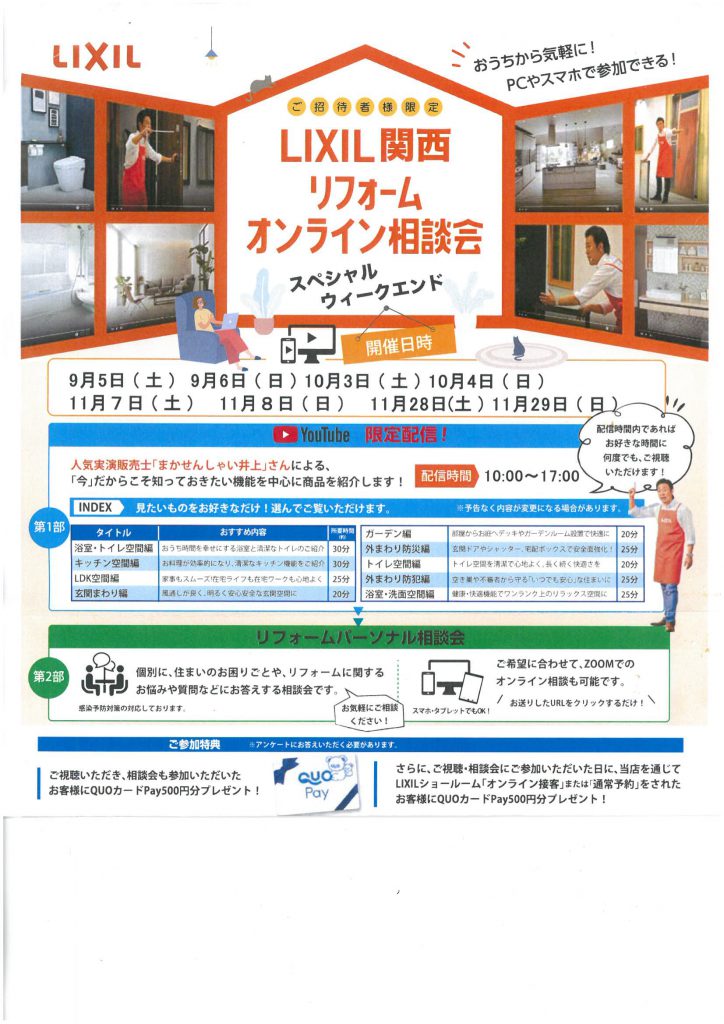 LIXIL関西リフォームオンライン相談会のお知らせ〈終了しました〉