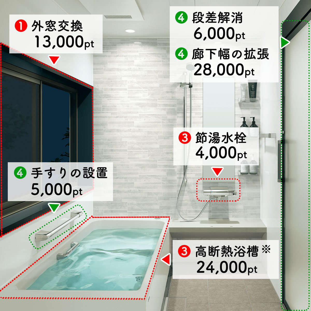窓・ドアの断熱改修 0.2~2.8万pt