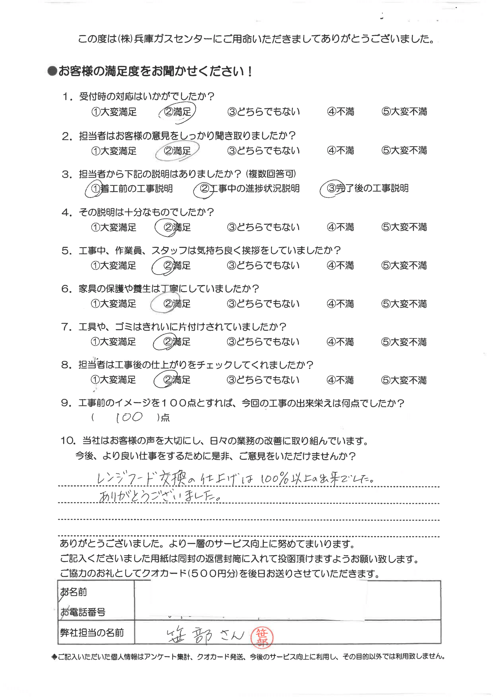 兵庫ガスセンターTOPTOP > お知らせ最新情報・お知らせ > ”お客様の声”