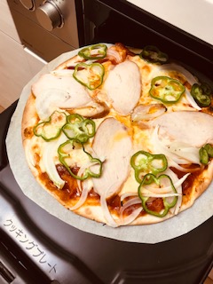 ビルトインコンロのカタログにクッキングプレートの掲載があり、ピザを焼いてみたくなり購入しました。グリルは魚を焼く以外にも調理ができるんですよ。スーパーで冷凍ピザシート、トマトソースやトッピングを揃えて調理開始。ガス火は高温でカリッと仕上がります。クッキングプレートは軽くて洗いやすくお手入れも簡単です。オプション部材に注目するとビルトインコンロが大活躍しますよ。