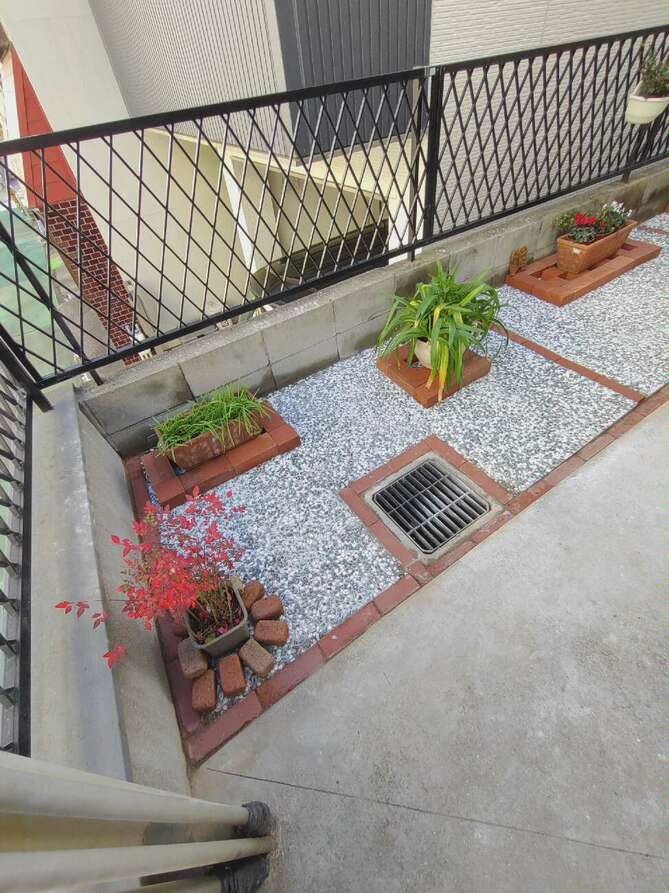 四季折々の植物や金木犀で庭を彩っていましたが、草むしりや樹木の剪定など、歳を重ねると手入れが負担になってきました。コンクリートでメンテナンスしやすい庭でガーデニングを楽しむことできます。Before