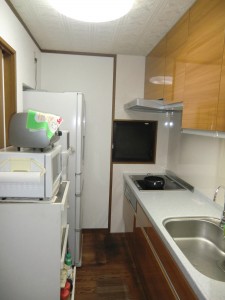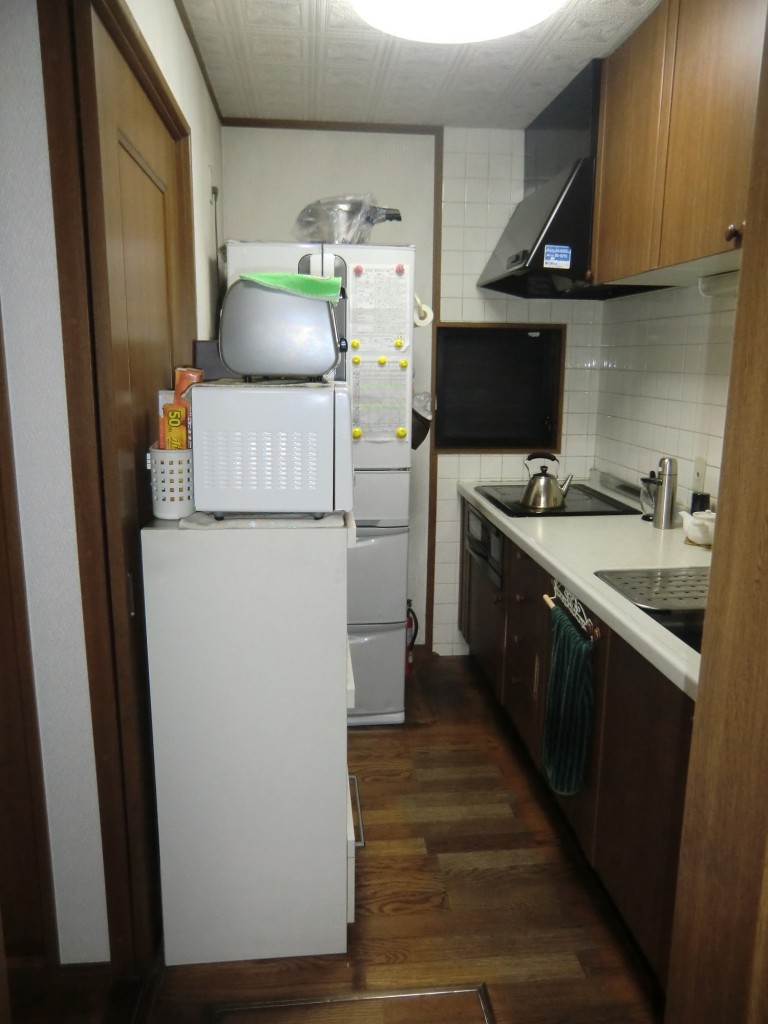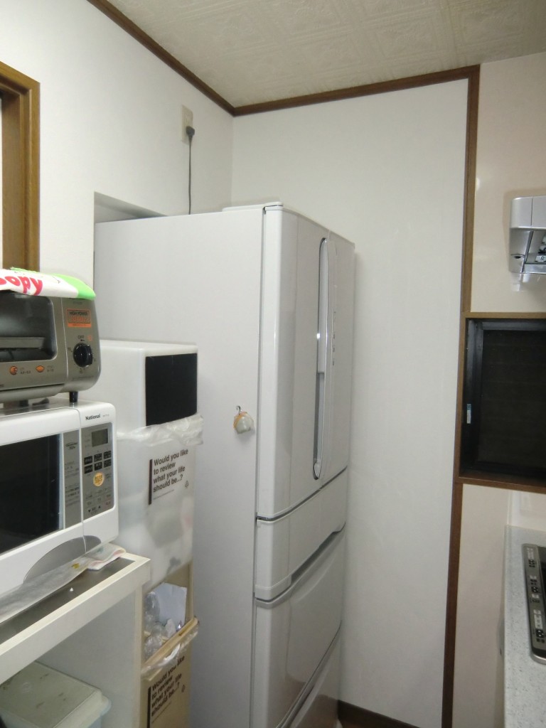 キッチンスペースには必要不可欠な冷蔵庫ですが、N様のお宅の冷蔵庫はスペースの都合上 どうしても写真のような向きで置くしか仕方がありませんでした。それ故、冷蔵庫の使い勝手が悪いばかりでなくキッチンのコンロ下の収納物が取り出せない状態でした。そこでこの度のリフォームでは一番のお悩みを解決するべく、冷蔵庫の後ろの壁を少し後方に移動させて新たに壁を造作する工事を行い コンロ前のスペースを拡げました。改修前と比べるとたった15cm広くなっただけですが、冷蔵庫の向きを変えることができ コンロ下の収納もなんとか使えるようになりました。担当者のプランにより大変使い勝手の良いキッチンになりました。| 主な商品 / 設備 / 素材 | LIXIL リシェル |