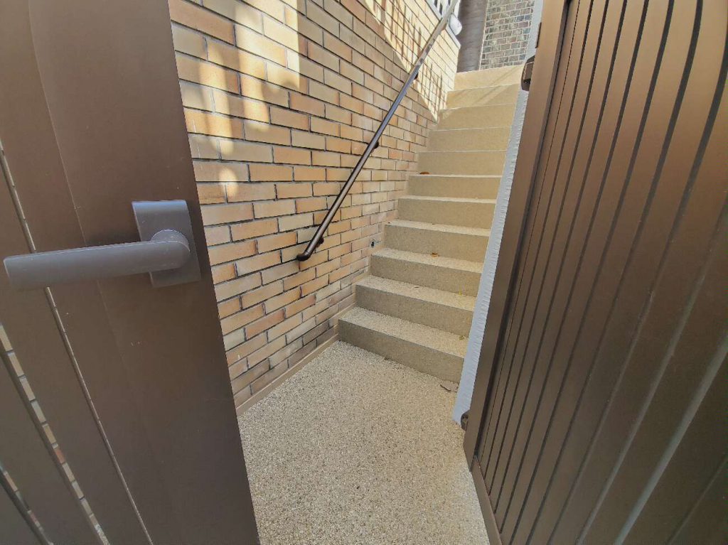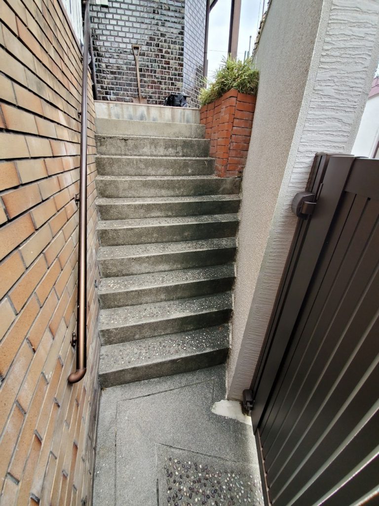 玄関から出て、外には急な階段があり、上り下りに不安がありました。
