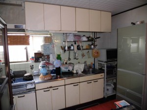 お施主様が特に強く願われたのが、『キッチンを無駄なく使い勝手良くしたい。』でした。毎日キッチンに立っていて、一番気になっていたのが、冷蔵庫の位置と向き。キッチンの幅が広いために、冷蔵庫を並べて置くことができず、止む無く建具の前に置いていたのですが、使い勝手の悪さが悩みの種でした。
