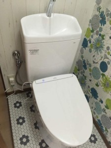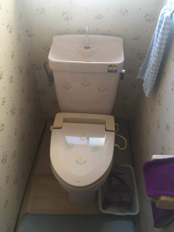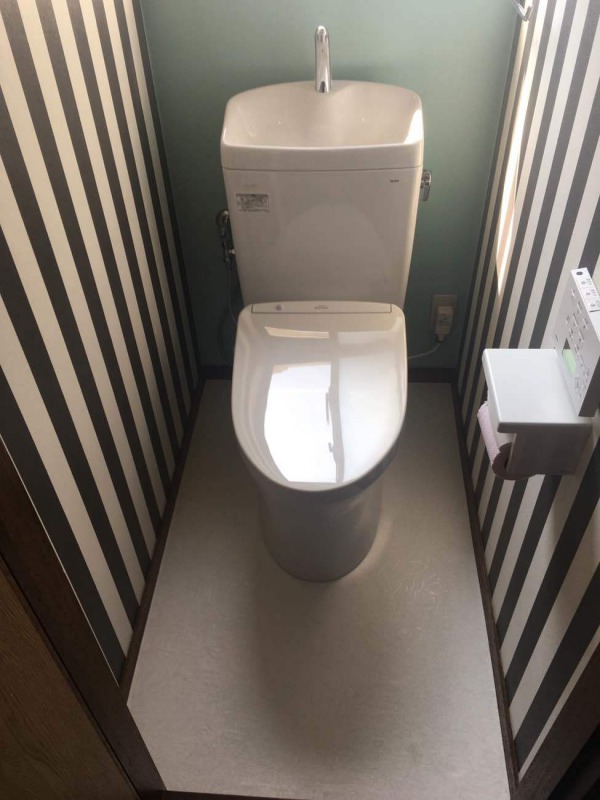 トイレセットは上下階共、いたってシンプルなタイプを選びましたが、お気に入りの壁クロスと床クッションフロアをセンス良くチョイスされたことにより、それぞれが趣の異なるとても素敵な空間へと生まれ変わりました。
