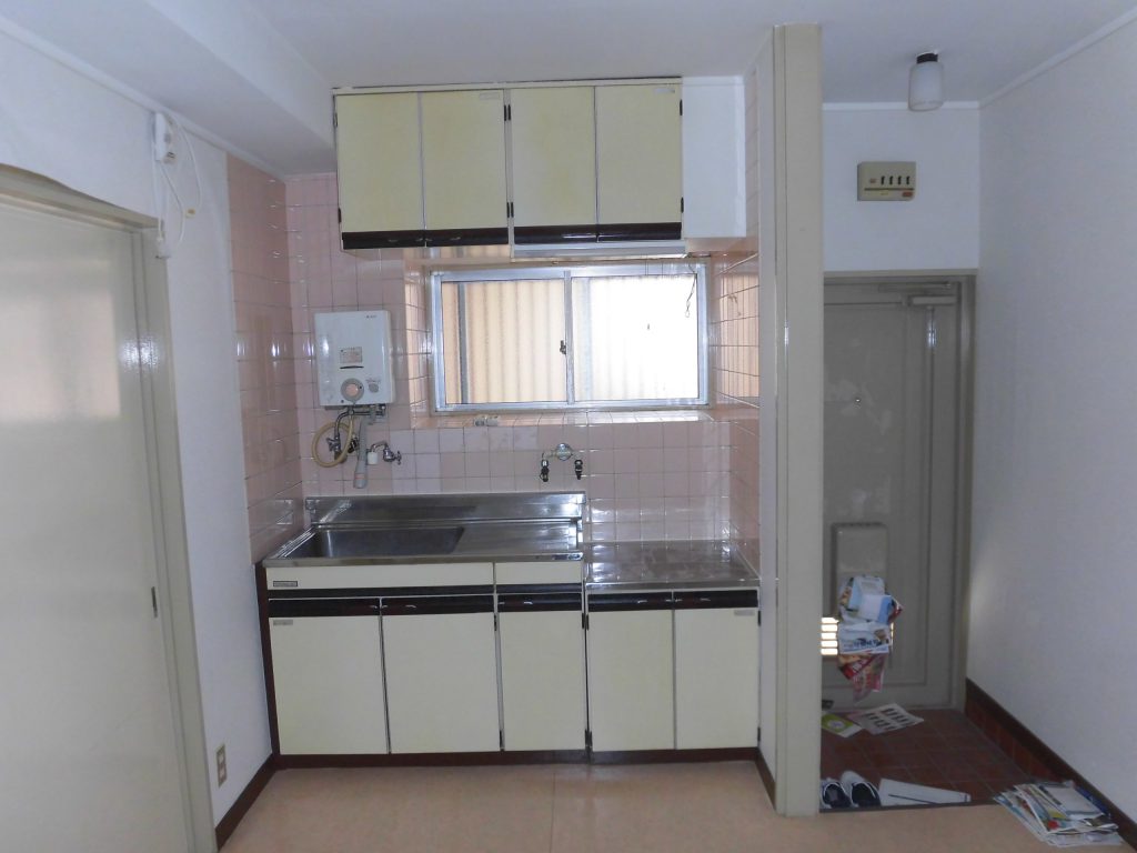 全面・水廻りリフォーム施工事例 新婚さんに好んでもらえる賃貸物件にリノベーション 神戸市兵庫区 T様賃貸物件 お客様からのご要望&リフォーム内容 長年住まわれた方が退去されたのを機に、一室全面改修を計画されていたオーナー様が弊社の折込チラシに目を止めて頂きました。若い層の好みに合わせた明るくシンプルな色合いでまとめ、暮らす人の動線を考慮した間取りとワンランク上の住宅設備にこだわりました。 Before 玄関とキッチンが直結し、室内が丸見えでした。 二間続きの和室は今のニーズに合っていませんでした 間仕切りが多くキッチンまで光が届きません。 壁一面の押入には収納できるものが限られています。 床が冷たく設備に経年劣化が目立ちます スケルトンにして工事を進めています。 After キッチンの位置を移動して、使い勝手の良いキッチン空間になりました。 グリーンのアクセントカラーが室内を爽やかに演出します。棚を造作してデッドスペースが有効活用できました 採光タイプの折れ戸は室内に光を取り込みます。どんなインテリアにもコーディネートしやすい木目柄のデザインにしました。 押入をクローゼットに変更したことで、お気に入りのインテリアにマッチしそうです。 オーナー様が選定されたワンランク上の設備に笑顔で暮らしが始まります。 玄関ホールを設けてプライバシーが保てるように配慮しました。 主な商品 / 設備 / 素材 TOTO システムキッチン ミッテ TOTO システムバスルーム WTシリーズ TOTO トイレ、ウォシュレット ノーリツ 16号給湯器 ダイケン 床材、建具 工期 1ヶ月 プラン図 »クリックして拡大 »クリックして拡大