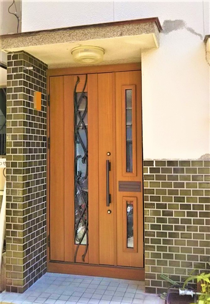 ドアのガタつきがあり、鍵を閉めるのも一苦労していました。お施主様が熟考して選ばれた唐草装飾がアクセントの玄関ドアは、開口部が広く、大きな荷物の出し入れも便利になりました。また、子扉の通風部より換気ができ、玄関の匂い軽減につながりました。