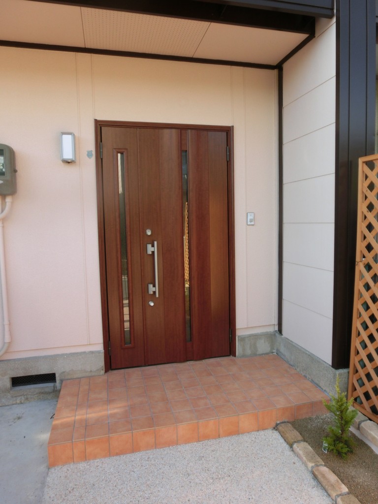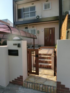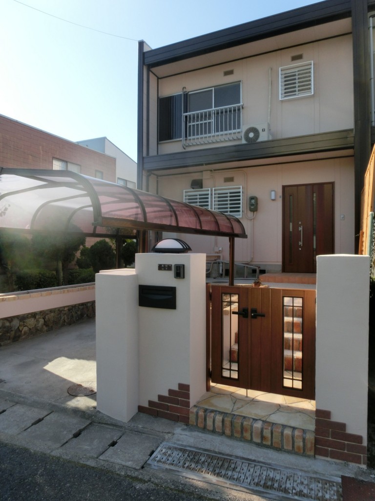 外装・エクステリアリフォーム施工事例 玄関ドア&アプローチ&門扉のリフォームにより家の顔がパッと明るくなりました! 神戸市北区 Y様 お客様からのご要望&リフォーム内容 門扉と玄関ドアを同系色の落ち着きのある色調とし、その間のアプローチ部分は鉄平石の乱張りとレンガ使いにてナチュラルな雰囲気にまとめました。道路に面した門柱廻りはタイルなどを配しデザイン性を持たせ、明るく機能的に仕上げました。玄関ドア前のタイル部分も貼りなおし、家の顔となる玄関部分がパッと明るくなりました。 Before After 主な商品 / 設備 / 素材 工期 10日間