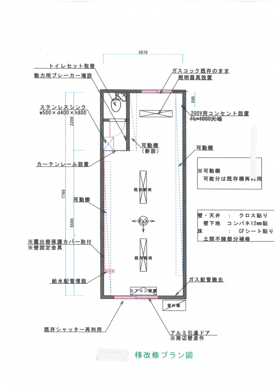 比較的交通量の少ない道路に面しているため荷物の搬入がしやすく、向かいには大きな公園があり静かな環境の空き店舗を気に入られ、かばん店へ改修できないかと相談を受けました。オーナー様の店舗は、かばんを仕入れて販売するのではなく、オーナー様自ら製造、修理そして出来上がったかばんの販売をされています。