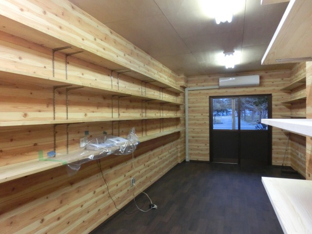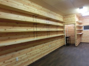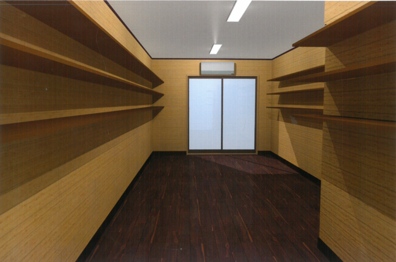 そのため店内にはかばんの陳列のための棚、革製品など原材料を置くための棚など、とにかく目一杯棚を設置して欲しいとご要望と、木目を生かした温かみのある内装をお考えでした。
