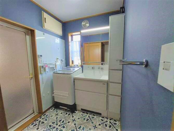 床にあふれていた洗濯用品を大容量のトールユニットに収めることで効率のいい洗面スペースになりました。Before